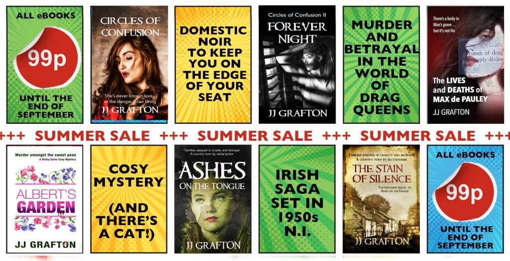 To celebrate the onset of summer – and I’m convinced it’s going to be a fantastic one – I have reduced all my ebooks to 99 pence until the end of summer. As I have a grasshopper mind, there’s a selection of genres to choose from – or download them all and just go with the flow.