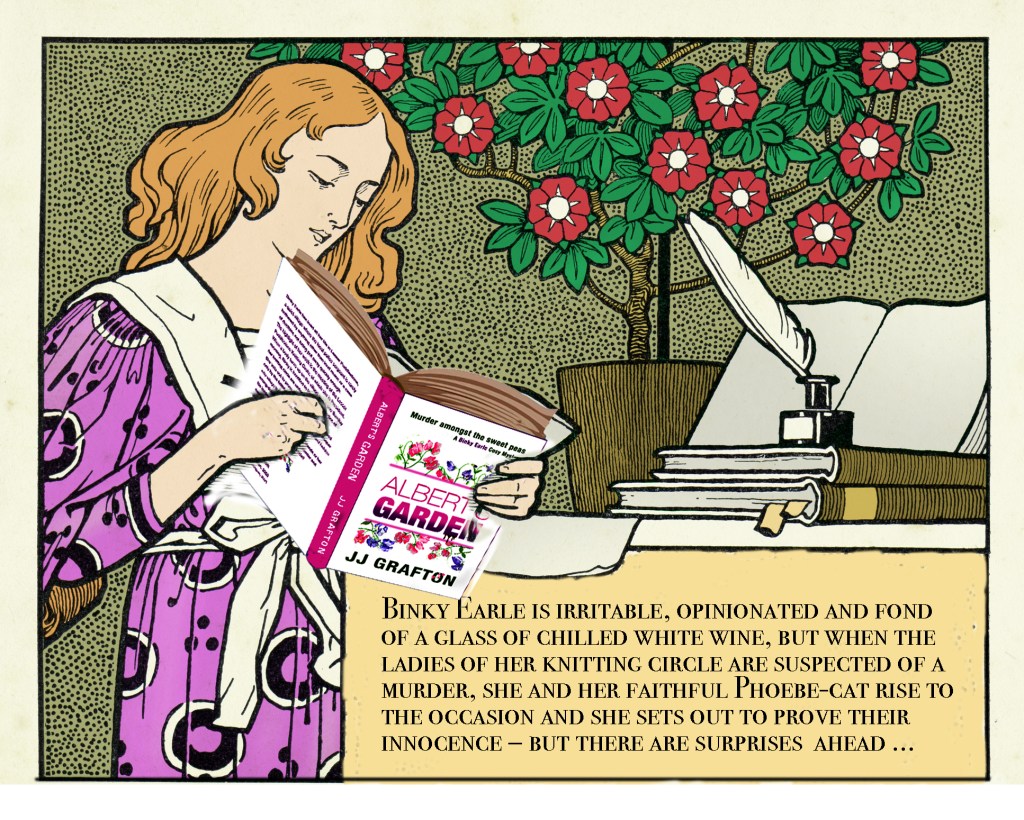 Just to prove that not everything that comes from my grasshopper mind is doom and gloom, Albert’s Garden: A Binky Earle Cosy Mystery (pictured right) has a heroine who is a lady of a certain age, a little irritable and more than a little opinionated. Binky likes a glass of chilled white wine and loves her Siamese cat, Phoebe-cat. She lives in a sleepy village called Lesser Puddlestone and, when the ladies of her knitting circle are suspected of murder, Binky takes it as a personal affront. She and Phoebe-cat set out to exonerate them, not quite prepared for the well-hidden secrets they will uncover.