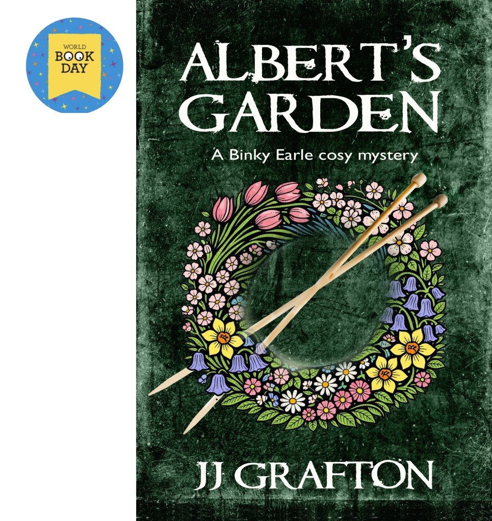 World Book Day seems the ideal time to reveal the new cover for Albert’s Garden, A Binky Earle Cosy Mystery – the story of an. opinionated old woman, a murder, a knitting circle and the faithful Phoebe-cat.
